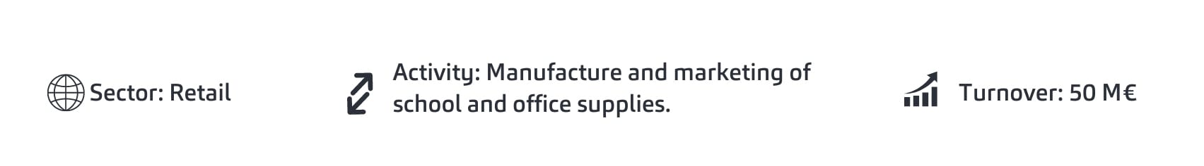 It distributes its products through well-known brands such as Oxford, Elba, Unilux and Enri, among others. Globally, it has 2,400 employees in 19 different countries and a turnover of more than €400M.