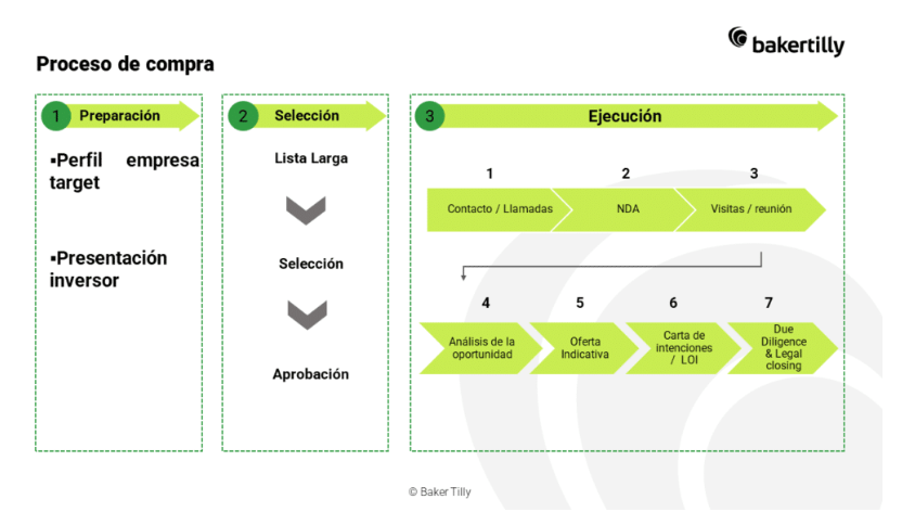 Se trata de un proceso que necesita de una investigación en profundidad centrada en los sectores en los que el inversor muestra interés; capacidad de negociación de un profesional con experiencia para conseguir un acuerdo justo; conocimientos de valoración, contratos de compraventa y pagos.