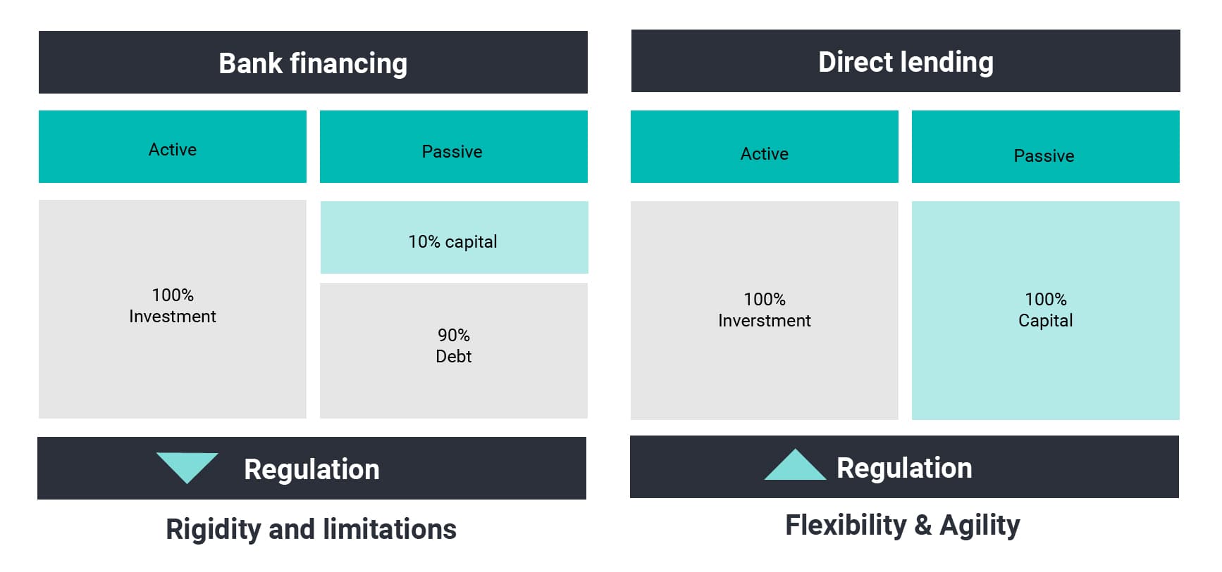- Direct lendingis a direct way of providing financing to the company in which the lender is other than a financial or banking entity. The actors are investment funds, which grant loans to companies with the aim of obtaining a return on their investors' capital.