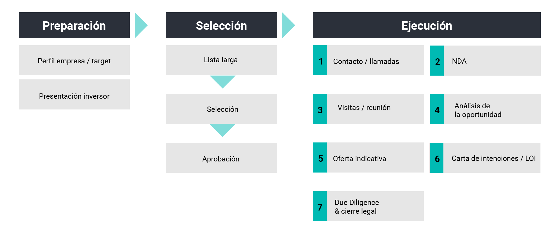 - Durante el proceso, se debe gestionar información asimétrica y, por tanto, requiere de un cuidadoso proceso de análisis y evaluación y de una verificación mediante las Due Diligence.